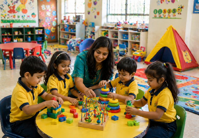 This warm and cheerful place makes kids feel safe and happy. They get excited to come to preschool every day. Our preschool campus is really fun. Kids love playing with toys and learning materials. They enjoy music and storytelling corners. Our preschool campus feels like home.